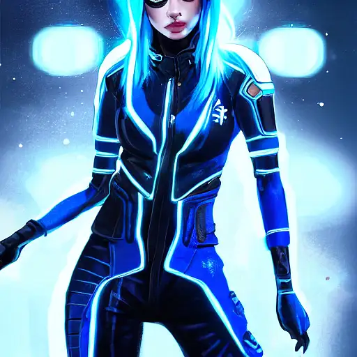 almost 3 years ago ashley benson as scifi character with blackcyberpunk jacket with glowing blue details, short blue with yellow streaks hairstyle, ultra realistic digital art, highly detailed, digital painting, artstation, concept art, smooth, sharp focus, artgerm illustration, 8k, medium distance portrait pose camera shot 0d213660d35 0 150