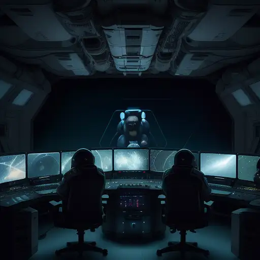 almost 2 years ago cinematic shot of stellar space station command deck with lots of computers. ::2 Dim light illuminates the command deck, and it feels like calm before the storm, everything is gathered but it is know that something is subtly wrong and mystery is yet to be revealed. A chimpanzee astronaut is manning one of the computers. A human astronaut is in the foreground looking towards the camera with their face clearly visible. mega yacht interior design by Tadao Ando, Giger and roll's Royce . ::2control deck, wirh many sci-fi user interface, holography. ornamental Byzantine with 3D-layers, intricate insanely detailed while at the same time also sleek and elegant. Low tech but luxury, hint of Islamic architecture geometric patterns, ::2the Moon. Elite. Alien. Metabaron. Tadao Ando, Villeneuve, Emmanuel Lubezki, Paul Deakins, panavision, smooth, sense of awe, 17. 5mm ::1. 5 --test --ar 5:2 --uplight --iw 2. 5 0dc716d38e6 1 85