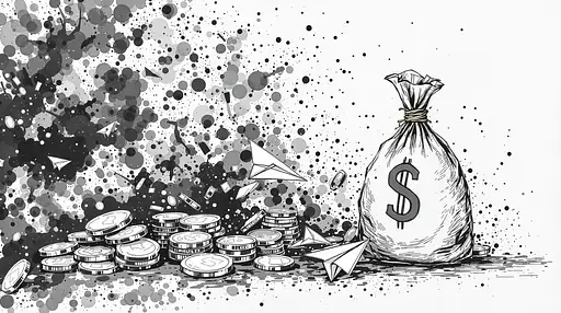 10 months ago Coins, A money bag overflowing., paper airplane, detailed,full-body shots,ink style,Ink splash art on the background,ink style,The whole is on the right,Ink wraps around the body, and the ink obscures the subject,Colored 157c27dd5de 0 24