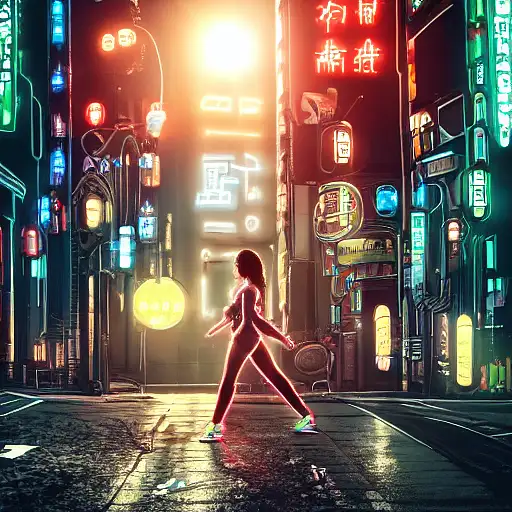 (film stock), (extremely detailed CG unity 8k wallpaper) full body portrait of a cyberpunk woman leaning on a wall in cyberpunk city street at night, (action scene), (extreme close up), ((Night time)), city lights, ((neon cyberpunk city street:1.3)), (neon lights), stars, moon, (film grain:1.4), colored lighting, full body,cyberpunk woman in a futuristic city in a cyberpunk city, (leaning on wall), ((rgb gamer headphones)), ((tanned skin:1.3)), ((angry)), (angry eyebrows), scowl, (e-girl blush:1.2) long hair, (freckles:0.9), detailed symmetrical face, (dark crimson hair:1.2), short hair, (messy hair bun), (undercut hair:1.4), punk girl, ((tattoos)), alt girl, ((face piercings:1.2)), ((fingerless gloves)), (brown eyes), many rings, reflective eyes, makeup, (red lipstick), (shiny lips), (white sclera), (sweat), ear piercings,detailed lighting, rim lighting, dramatic lighting, chiaroscuro, (white band shirt), ((ripped denim jacket:1.1)), (((jean jacket))), long sleeves, bracelets, (torn blue jean pants:1.2)), (mom jeans), brick wall, (polluted sky), wall graffiti, ((black doc martens)), ((black combat boots)), (black shoelaces), muddy boots,(from above:1.2), (wide angle lens), professional majestic impressionism oil painting by Waterhouse, John Constable, Ed Blinkey, Atey Ghailan, Studio Ghibli, by Jeremy Mann, Greg Manchess, Antonio Moro, trending on ArtStation, trending on CGSociety, Intricate, High Detail, dramatic,makoto shinkai kyoto, trending on artstation, trending on cg society,