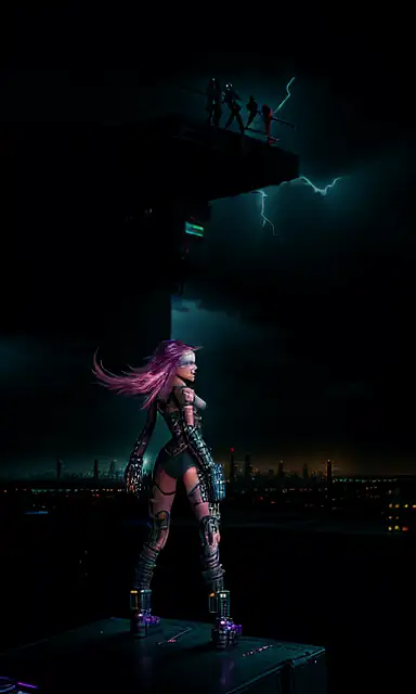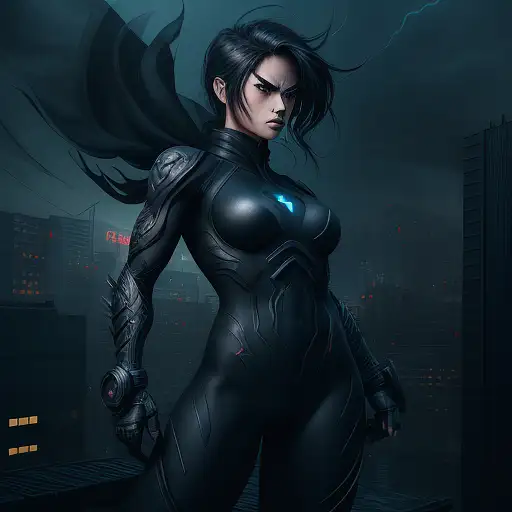 1 year ago Digital art, concept art, a cyberpunk girl, standing on a rooftop with a dark dystopian city in the background, dynamic pose, fierce, comic book style, extremely intricate, extremely detailed, menacing lighting, dramatic lighting, dark and stormy night, shot with Hasselblad, long exposure 220eb402339 0 34