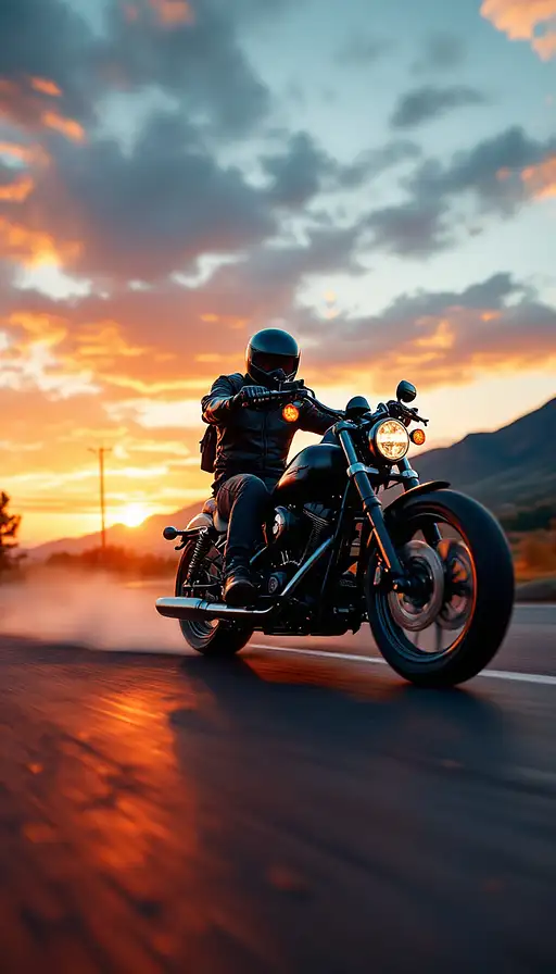 8 months ago picture ultra realistic biker on a harley davidson motorcycle on the road 66 sunset side view --ar 4:6 --v 6.0 220eb402339 1 46