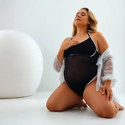 A medium shot, low-angle photograph captures a voluptuous woman with a fair skin tone kneeling on a plain white floor. She is positioned to the right of the frame, with a large, indistinct white object, possibly a beanbag chair, occupying the left side and creating a soft, diffused light. The woman is adorned in a black, halter-neck one-piece swimsuit with white trim, featuring a sheer mesh panel across the torso. Her gaze is closed, and her head is tilted back, conveying a sense of peace or introspection. Her left hand rests on her chest, fingers lightly touching the swimsuit, and she wears a delicate silver necklace with a small pendant and a ring on her left ring finger. A sheer, gauzy white robe drapes loosely around her, with a patterned texture that creates a delicate, ethereal effect. Her hair is long, wavy, and blonde, falling over her shoulders. The lighting is soft and diffused, likely from an overhead source, creating subtle shadows that emphasize her curves. The overall color palette is dominated by the stark white of the background and the robe, contrasted with the black of the swimsuit and the woman's skin tone. A small, bright orange rectangular object is visible on the floor in the lower left corner, providing a minor pop of color. Keywords: sensual, serene, opulent, soft focus, high detail, luxurious fabric, natural curves, studio lighting, editorial. neg_prompt: blurry, low quality, poorly rendered, amateur, distorted, asymmetrical, harsh lighting, unnatural pose. photo, Sony Alpha A7 II Mirrorless Digital Camera, Canon EF 24-70mm f/2. 8L II USM Lens, The Selens 5-in-1 39. 4â³ Triangle Reflector, INTRICATE, ATTRACTIVE, FEMALE, WOMAN, Blond Hair, (Any Age) , ((2girl) ), , Hardcore-sex, Horney, Home alone, (In bedroom) , ((in any sex pose) ), (open legs showing pussy) , (having an orgasm) , gorgeous girls, cute girls, girls orgasm, cute, hentai, best quality, (NSFW) , (masterpiece) , (breasts:1.555) , pretty tits, ((nipples) ), light nipples, cute nipples, normal nipples, no clothes, naked, (messy hair:0.989) , (blond fantasy princess hair) , (natural hair) , (wet wavy hair) , (cleavage:0.586) , collarbone:0. 746), (eyebrows visible through hair:0.732) , detailed gorgeous face, (sloppy) , saliva, spit, (female orgasm) , trembling, embarrassed, (beautiful eyes:0.944) , (long hair:0.982) , (ponytail:0.741) , (sexy) , (emo) , wide hips, ((white lace stockings) ), spreading her pussy, ((good pussy) ), (juicy pussy) , pink pussy, (open pussy) , (pussy hair) , vagina, camel toe, ((clit) ), no underwear, indoors, mood lighting, intricate, elegant, perfect hand, perfect fingers <lora:zPDXL2-neg:0.8> zPDXL2 <lora:zPDXL2:0.8> zPDXL2