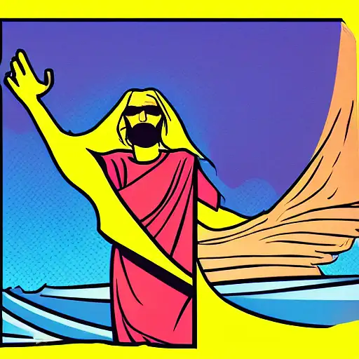 3 years ago high contrast comic book style art, moses opening the sea, pop art, comic art, clean lines, bright colors --v 4 23c1d769412 0 160
