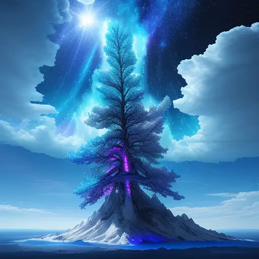 over 1 year ago Beautiful prismatic-plasma lake blue crystal, mounteins epic, digital painting, extreme detail, 4k, ultra hd, hyper detailed, colorful, sparkle covered sky, masterpiece 3D science fiction art. Bright blue skys, clouds brigth white. sun white brigth. day. Child seetdown on tree epic on the background 2664a6a87a8 0 30