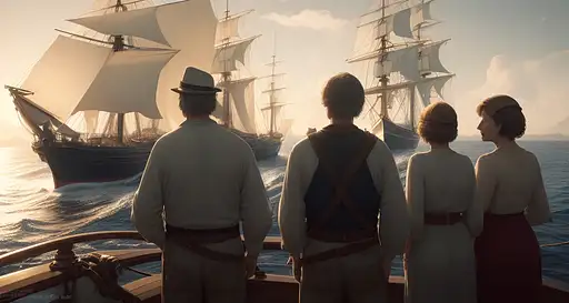 over 1 year ago a man stands facing the camera, behind the man are his parents - his mother on the left, his father on the right ART of a ultra realistic sailing ship, dramatic light, pale sunrise, cinematic lighting, battered, low angle, trending on artstation, 4k, hyper realistic, focused, extreme details, unreal engine 5, cinematic, masterpiece, art by studio ghibli, intricate artwork by john william turner 2ca25f7441d 0 68