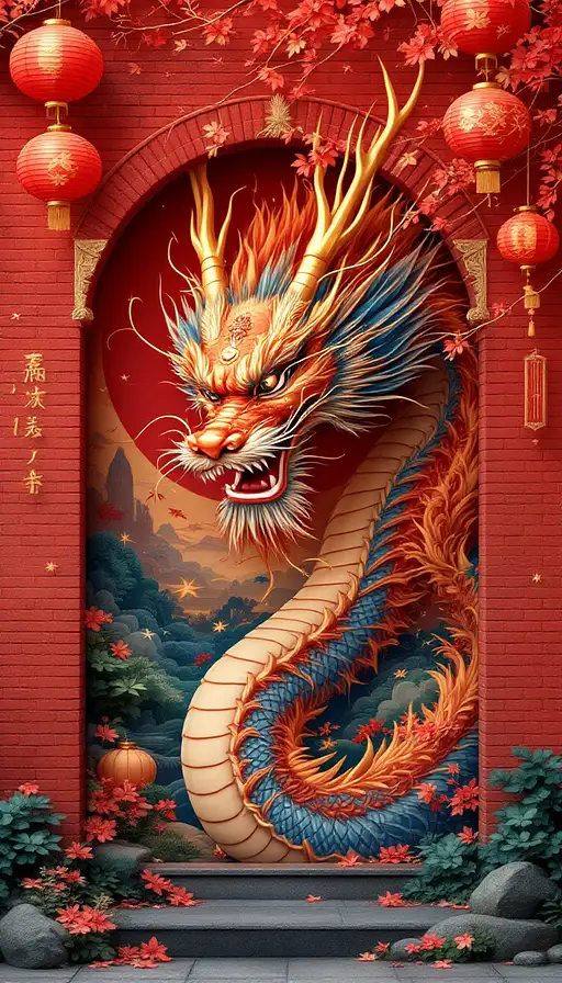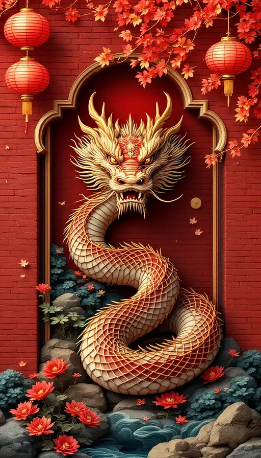 8 months ago /imagine wall art design, Chinese New Year 2024, dragon theme, Toulouse elements (Garonne river, pink bricks), red and gold colors, traditional lanterns, AI-generated, 4k resolution, intricate details --v 6 --ar 4:5 2dbd83a422f 0 50