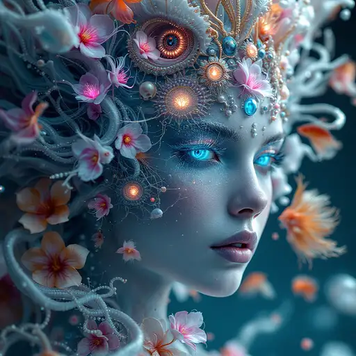 8 months ago Goddess close-up portrait ribcagel. jellyfish phoenix head, nautilus, orchid, skull, betta fish, bioluminiscent creatures, intricate artwork . octane render, trending on artstation,t symmetrical artwork. cinematic, hyper realism, high detail, octane render, 8k 300486ca51f 0 43