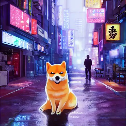 over 2 years ago a big large happy kawaii fluffy cutest baby Shiba-inu puppy wearing kimono enjoy shopping in a futuristic abandoned city, anime movie, IMAX, cinematic lighting, only in cinema, 3d1b195c57b 0 45
