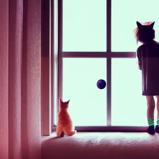 over 2 years ago anime boy sitting in room near window looking outside, moon , a girl playing with cat in rain 3d1b195c57b 0 42