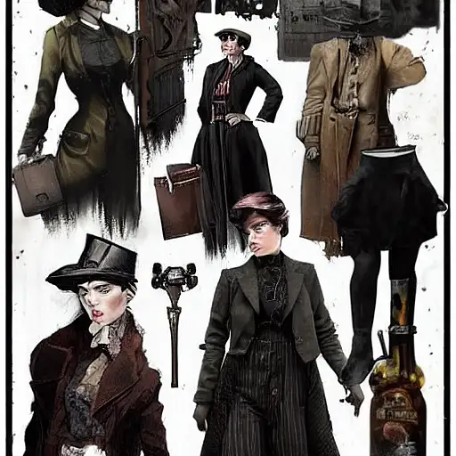 almost 3 years ago Concept art of a beautiful female industrial 1900s gangster in the style of Ashley Wood ,Keira Knightley in Pride and Prejudice, Sam Weber, Joao Ruas, Octavi Arrizabalaga portrait Peaky Blinders aesthetic canon of proportion grunge and vintage and sci fi aesthetic::1, epic lighting, hyperdetailed, artstation, 8k, high resolution, burnt edges, golden ratio, analogous colors, minimalist::1 --uplight --no long neck --no long anatomy --no extra anatomy --no second face —ar 9:16 3d8627b566b 0 64