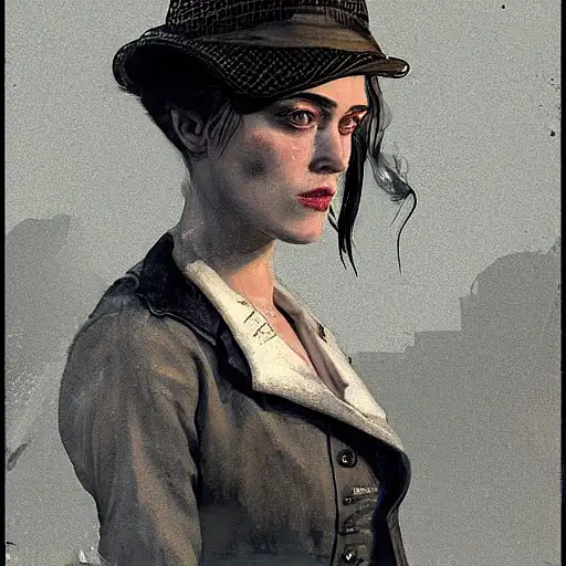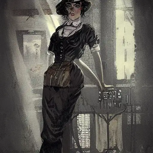 almost 3 years ago Concept art of a beautiful female industrial 1900s gangster in the style of Ashley Wood ,Keira Knightley, Sam Weber, Joao Ruas, Octavi Arrizabalaga portrait Peaky Blinders aesthetic canon of proportion grunge and vintage and sci fi aesthetic::1, epic lighting, hyperdetailed, artstation, 8k, high resolution, burnt edges, golden ratio, analogous colors, minimalist::1 --uplight --no long neck --no long anatomy --no extra anatomy --no second face —ar 9:16 3d8627b566b 0 81