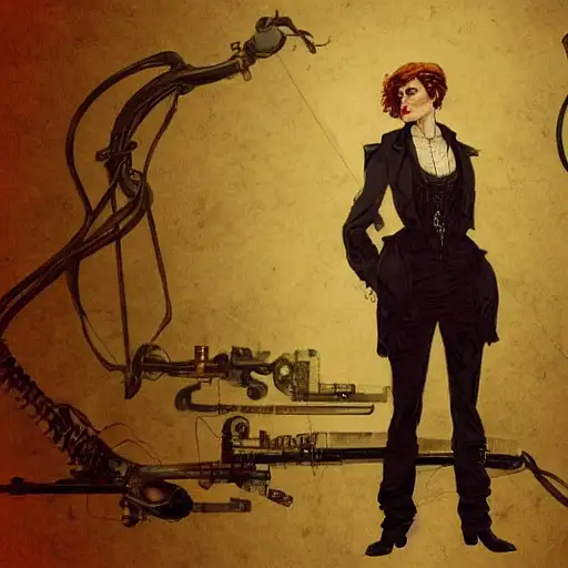 almost 3 years ago Concept art of a beautiful female industrial 1900s gangster in the style of Ashley Wood ,Keira Knightley, Sam Weber, Joao Ruas, Octavi Arrizabalaga portrait Peaky Blinders aesthetic canon of proportion grunge and vintage and sci fi aesthetic::1, epic lighting, hyperdetailed, artstation, 8k, high resolution, burnt edges, golden ratio, analogous colors, minimalist::1 --uplight --no long neck --no long anatomy --no extra anatomy --no second face —ar 9:16 3d8627b566b 0 67