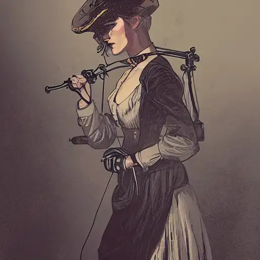 almost 3 years ago Concept art of a beautiful female industrial 1900s gangster in the style of Ashley Wood ,Keira Knightley, Sam Weber, Joao Ruas, Octavi Arrizabalaga portrait Peaky Blinders aesthetic canon of proportion grunge and vintage and sci fi aesthetic::1, epic lighting, hyperdetailed, artstation, 8k, high resolution, burnt edges, golden ratio, analogous colors, minimalist::1 --uplight --no long neck --no long anatomy --no extra anatomy --no second face —ar 9:16 3d8627b566b 0 76