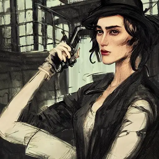 almost 3 years ago Concept art of a beautiful female industrial 1900s gangster in the style of Ashley Wood ,Keira Knightley in Pride and Prejudice, Sam Weber, Joao Ruas, Octavi Arrizabalaga portrait Peaky Blinders aesthetic canon of proportion grunge and vintage and sci fi aesthetic::1, epic lighting, hyperdetailed, artstation, 8k, high resolution, burnt edges, golden ratio, analogous colors, minimalist::1 --uplight --no long neck --no long anatomy --no extra anatomy --no second face —ar 9:16 3d8627b566b 2 360