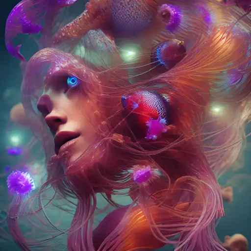 almost 2 years ago Goddess close-up portrait ribcagel. jellyfish phoenix head, nautilus, orchid, skull, betta fish, bioluminiscent creatures, intricate artwork . octane render, trending on artstation,t symmetrical artwork. cinematic, hyper realism, high detail, octane render, 8k 3dd726fc739 0 35