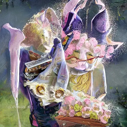 almost 3 years ago highly detailed portrait of a beautiful woman, side profile, with pink hair, pink bunny ears headband , crown on her head, tight clothing, full body, holding a sweet baby bunny in her arms, bunny is eating pizza, stephen bliss, unreal engine, fantasy art by greg rutkowski, loish, rhads, ferdinand knab, makoto shinkai and lois van baarle, ilya kuvshinov, rossdraws, tom bagshaw, global illumination, 48ce7b37113 0 60