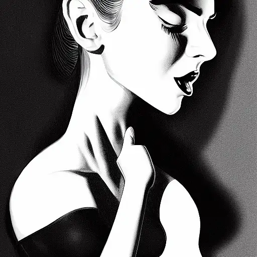 almost 3 years ago beautiful woman pinup, black and white in the style of alex ross, wearing a tight black dress, black hair ponytail, 2 d, 4 k, unreal, intricate, digital painting, highly detailed, artstation, sharp focus, illustration, 48ce7b37113 0 75