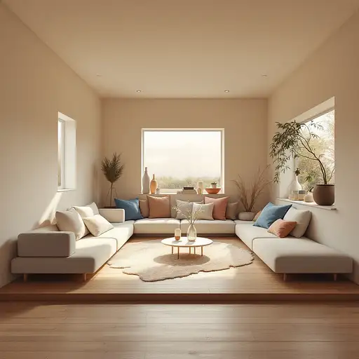 In the distance, shadowy outlines of towering trees stand stoically, their canopies blending into one another like an ink wash painting. Beyond them, the faint contours of a rugged mountain range emerge, softened by the natural haze of the atmosphere. The peaks, some jagged and others rolling gently, fade into layers of gray and blue, adding a subtle depth to the composition.