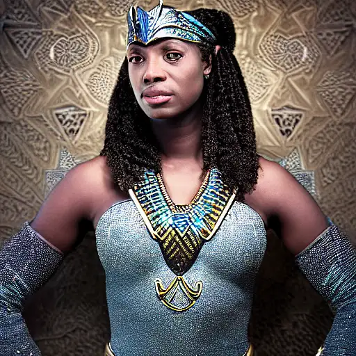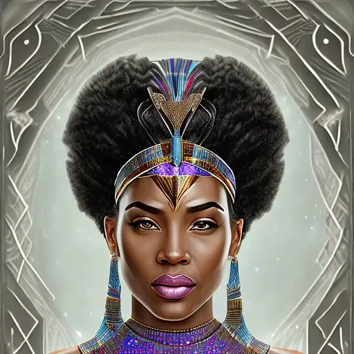 over 2 years ago Portrait of a Nubian queen Wonder Woman portrait from Ancient Egypt, intricate filigree ice colored black panther pendant that’s intricate, detailed garment design, bioluminescent colors, photo realistic, cinematic lighting, metal diamond design rose photorealistic sprinkled with dropplets of crystal and icicle crystallized gems cinematic colors purple bokeh, in river 8K beautiful, immense intricate detail, 8K 53dbddcfe26 0 95