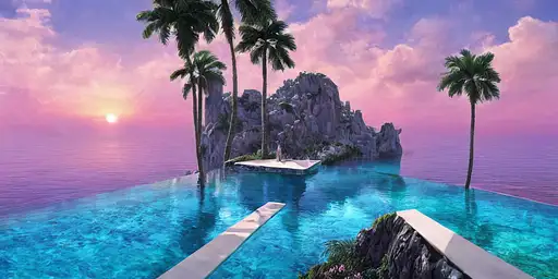 over 2 years ago masterpiece, hyperrealistic surrealism, award winning masterpiece with incredible details, epic stunning, infinity pool, a surreal vaporwave liminal space, highly detailed, trending on ArtStation, calming, meditative, purple gold arches, palm trees, vaporwave, surreal, sharp details, dreamscape, crystal clear water 53dbddcfe26 0 100