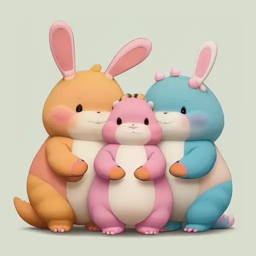 over 1 year ago It generates an image that presents three stuffed animals in front of a trunk: a jet-colored stuffed monkey, a pink beaver, a yellow rabbit with a dinosaur costume and a fanny pack, and a green anteater. The background of the image must be set in a time travel scenario with green particles. The resolution must be 32k UHD, with the highest quality, incorporating elements of professional photography, such as detailed focus, depth of field and highlight details. The image should convey an elegant and surreal feeling, following the theme of a dream where a clock melts, surrounded by floating abstract shapes and vibrant colors. 58f228dca73 0 72