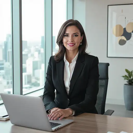 2 months ago Mujer CEO de una empresa, de unos 35 a 45 años, de apariencia profesional y segura. Lleva un traje ejecutivo moderno y elegante (blazer y pantalón o falda), sentada en una oficina de alto nivel con ventanales grandes con vista a la ciudad. Estilo de fotografía realista, iluminación natural, fondo desenfocado con detalles de oficina moderna (laptop, libros, arte minimalista). Expresión de liderazgo, confianza e inteligencia. Estilo de retrato corporativo profesional. 5c128eb8d9f 0 13