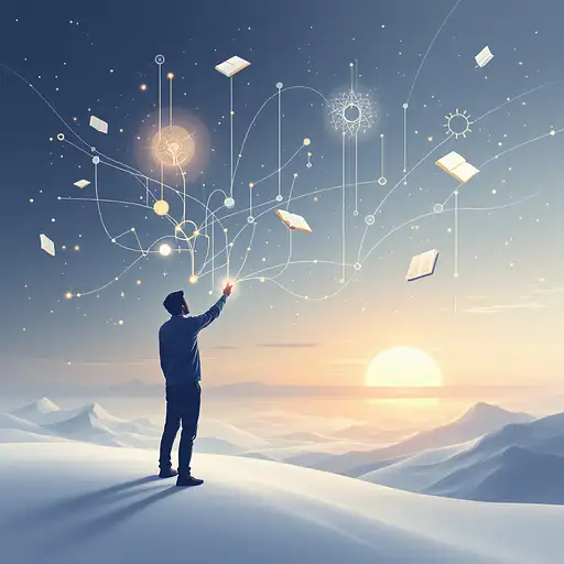 9 months ago A serene illustration depicting a human silhouette interacting with abstract glowing lines and shapes, symbolizing the flow of knowledge and learning through AI. Subtle elements like floating books, neural network patterns, and a soft digital glow blend seamlessly into the scene. The background features a minimalist and calming environment, such as a sunrise over a futuristic landscape, representing growth and discovery. Use muted tones of blue, white, and gold to convey sophistication and a sense of quiet inspiration. 5c14fe1e350 0 42