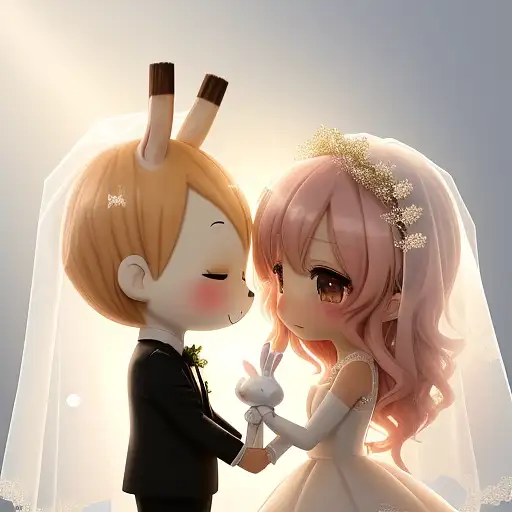 2 years ago Chibi marrying chibi syle bunny in white sparkling wedding veil, pastel colors, warm light, heartwarming, 8k cute 5d9eba8f1b2 1 130