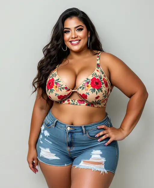 6 months ago Here's a description of a thick Latina woman with a focus on her unique features and style: **Physical Appearance**: This Latina beauty has a radiant complexion that reflects her vibrant heritage. Her skin is sun-kissed, with a warm glow that enhances her overall allure. She has captivating features—bright, expressive eyes that sparkle with confidence, high cheekbones, and full lips that often break into a welcoming smile. **Body**: With a thick, curvaceous figure, she embodies confidence and self-assurance. Her body features shapely hips and a perky derriere that accentuates her silhouette, drawing attention in a way that celebrates her curves. Although she has small breasts, they complement her overall shape beautifully, adding to her charm. **Clothing Style**: She confidently embraces her style with revealing clothing that highlights her assets. For example, she might wear a fitted crop top that accentuates her waist and showcases her midriff, allowing her to express her playful side while still being fashionable. The top could feature bright colors or bold patterns that reflect her vibrant personality. **Bottoms**: Paired with the crop top, she could wear high-waisted shorts or a snug mini skirt that hugs her curves, showcasing her shapely backside. The shorts might have a distressed look or fun embellishments, adding a trendy touch to her ensemble. The fit emphasizes her figure while allowing for comfort and freedom of movement. **Accessories**: To complete her look, she might choose statement jewelry, such as hoop earrings or layered necklaces, that draw attention to her neckline. Stylish ankle boots or strappy sandals could elevate her outfit further, elongating her legs and adding an extra flair. **Aura and Personality**: With a confident posture and playful demeanor, she exudes a vibrant energy that is impossible to ignore. Her laughter is infectious, and her warmth immediately puts others at ease. She embraces her individuality and carries herself with pride, celebrating her curves and unique beauty. Overall, this thick Latina woman in revealing clothes embodies a mix of confidence, style, and charisma, making her both captivating and distinctive in any setting. 685e514ce7a 0 25