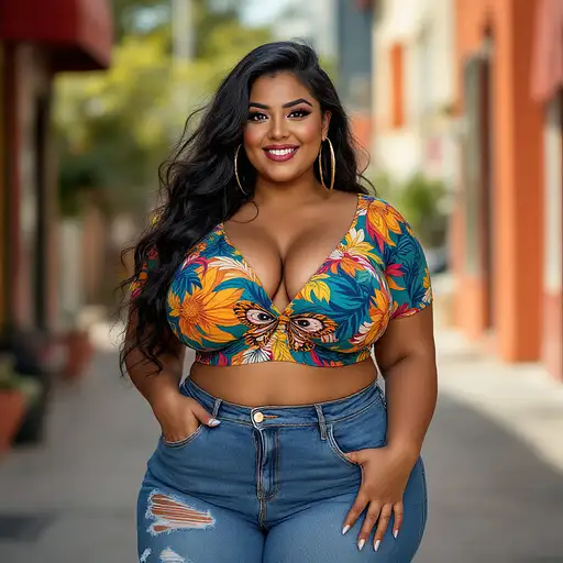 6 months ago Here's a description of a thick Latina woman with a focus on her unique features and style: **Physical Appearance**: This Latina beauty has a radiant complexion that reflects her vibrant heritage. Her skin is sun-kissed, with a warm glow that enhances her overall allure. She has captivating features—bright, expressive eyes that sparkle with confidence, high cheekbones, and full lips that often break into a welcoming smile. **Body**: With a thick, curvaceous figure, she embodies confidence and self-assurance. Her body features shapely hips and a perky derriere that accentuates her silhouette, drawing attention in a way that celebrates her curves. Although she has small breasts, they complement her overall shape beautifully, adding to her charm. **Clothing Style**: She confidently embraces her style with revealing clothing that highlights her assets. For example, she might wear a fitted crop top that accentuates her waist and showcases her midriff, allowing her to express her playful side while still being fashionable. The top could feature bright colors or bold patterns that reflect her vibrant personality. **Bottoms**: Paired with the crop top, she could wear high-waisted shorts or a snug mini skirt that hugs her curves, showcasing her shapely backside. The shorts might have a distressed look or fun embellishments, adding a trendy touch to her ensemble. The fit emphasizes her figure while allowing for comfort and freedom of movement. **Accessories**: To complete her look, she might choose statement jewelry, such as hoop earrings or layered necklaces, that draw attention to her neckline. Stylish ankle boots or strappy sandals could elevate her outfit further, elongating her legs and adding an extra flair. **Aura and Personality**: With a confident posture and playful demeanor, she exudes a vibrant energy that is impossible to ignore. Her laughter is infectious, and her warmth immediately puts others at ease. She embraces her individuality and carries herself with pride, celebrating her curves and unique beauty. Overall, this thick Latina woman in revealing clothes embodies a mix of confidence, style, and charisma, making her both captivating and distinctive in any setting. 685e514ce7a 0 22
