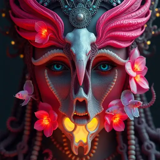 7 months ago Goddess close-up portrait ribcagel. jellyfish phoenix head, nautilus, orchid, skull, betta fish, bioluminiscent creatures, intricate artwork . octane render, trending on artstation,t symmetrical artwork. cinematic, hyper realism, high detail, octane render, 8k 685e514ce7a 0 25