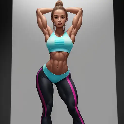 Beautiful girl fitness trainer, stands and shows her perfect figure to her full height, well - developed muscles, beautiful body, athletic legs and hips, colorful realism, modularity, rich close - ups, uhd image, high attention to detail, high definition and level of detail, Highest quality, perfect masterpiece, perfect art, young and energetic, top is clean babes T- shirt, pearl illusion, fashion trends, 3s material, HD, detail performance, 3D, octane rendering, ray tracing, complex details, animated lighting, OCrenderer, 8k,