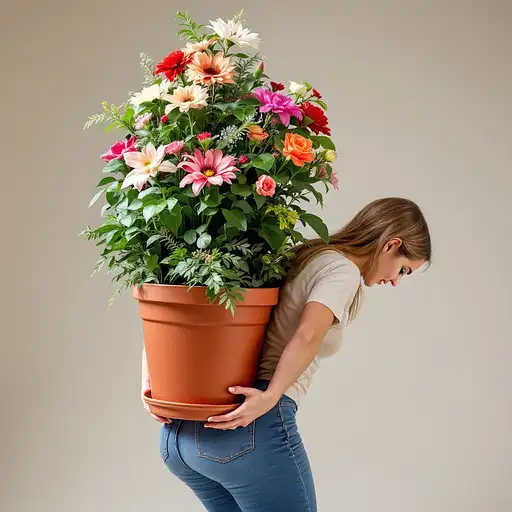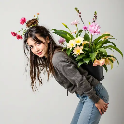 10 months ago A photo model bending over with a large pot flower placed on her back. Thumbs up. 6fc747eb50e 0 31