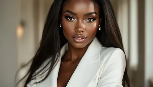 7 months ago close-up of a stunning African American fashion model, In a Luxury Office suit, Full body, wearing a tailored white elegant designer suit, with long Peruvian straight hair. shot on a Sony A7III, high quality --no freckles, blemishes --chaos 50 --ar 1:2--stylize 750 --v 6.1. 72219555758 0 29