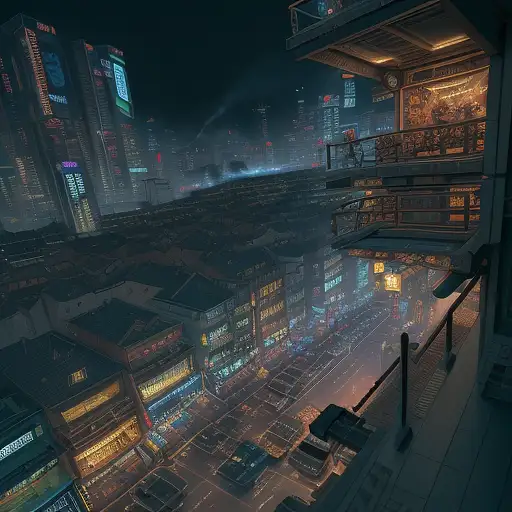 over 2 years ago ((best quality, masterpiece, RAW photo, digital drawing, cyberpunk style )), high angle shot from above, tiny old cyberpunk town, ( people on balcony, people in street, ) , insanely intricate, insanely detailed, lots of details, lots of people, cars , at night, city steaming with life, abundant city activities, (( aesthetic, aestheticism )), 8K UHD, HDR, Full HD, absurdres 7813bc86678 2 100