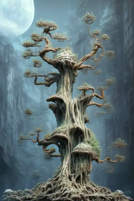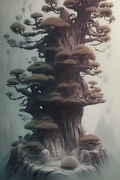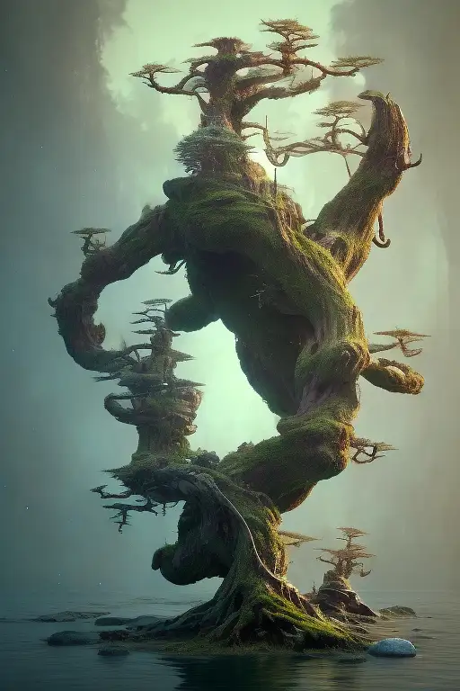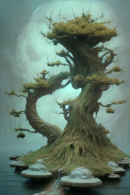 olpntng style, symmetrical bonsai, Dave McKean style, Kent Williams style , octane render, unreal engine, hyperrealism, perfect composition, beautiful detailed intricate insanely detailed octane render trending on artstation, 8 k artistic photography, photorealistic concept art, soft natural volumetric cinematic perfect light, Color Palette – The 60-30-10 Rule, , award - winning photograph, masterpiece, sharp focus, intricate detail, highly detailed, sharp focus, intricate details, highly detailed by John J. Muth, WLO, George Pratt and alphonse mucha, fantasy, intricate artwork masterpiece, ominous, matte painting movie poster, golden ratio, trending on cgsociety, intricate, epic, trending on artstation, by artgerm, h. r. giger and beksinski, highly detailed, vibrant, production cinematic character render, ultra high quality model, professional ominous concept art, by artgerm and greg rutkowski, an intricate, elegant, highly detailed digital painting, concept art, smooth, sharp focus, illustration, in the style of Dave McKean, scott hampton, and Bill Sienkiewicz. , reflective eyes, Pixar render, unreal engine cinematic smooth, intricate detail, oil painting, heavy strokes, paint dripping, oil painting, heavy strokes, paint dripping