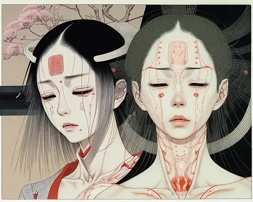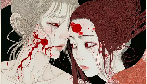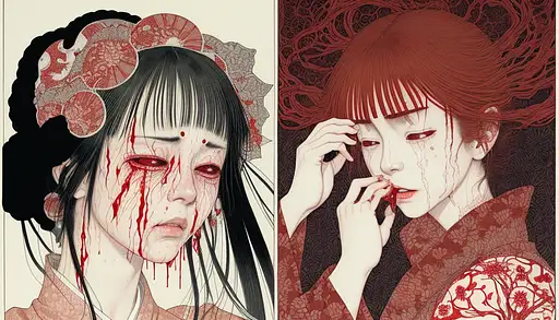 over 1 year ago a single Woman crying blood, artwork by Takato Yamamoto and Chika Yamada, very detailed, surrealist art by takato yamamoto 7b8defd0a20 0 32