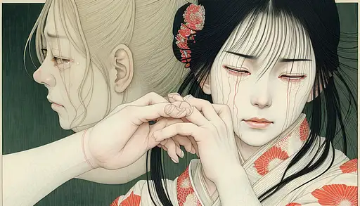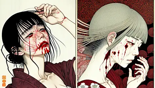 over 1 year ago a woman crying blood, artwork by Takato Yamamoto and Chika Yamada, very detailed, minimalistic 7b8defd0a20 0 24