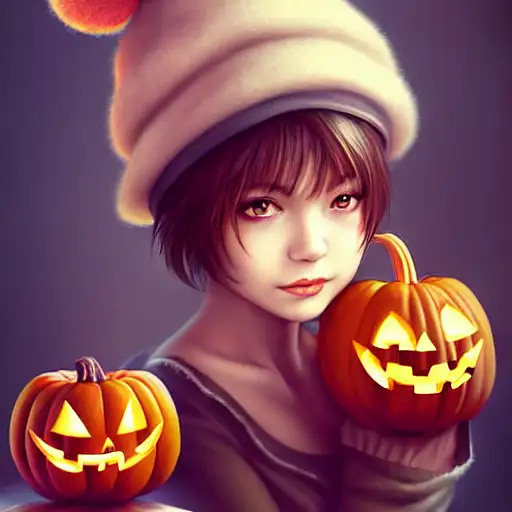 over 2 years ago The personification of the Halloween holiday in the form of a cute girl with short hair and a villain's smile, (((cute girl)))cute hats, cute cheeks, unreal engine, highly detailed, artgerm digital illustration, woo tooth, studio ghibli, deviantart, sharp focus, artstation, by Alexei Vinogradov bakery, sweets, emerald eyes 806ea0800a6 0 91
