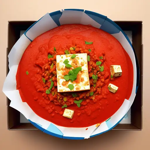 2 years ago "Give me a picture of a koshary dish with tofu and tomato sauce on top, shot from an overhead angle, presented in a tasty and modern 'to-go' paper container 8a0bfb9d7ff 0 38