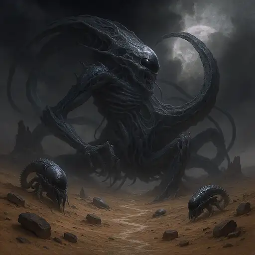 3 months ago Centered image. 400 pixels. In the style of HR Giger with his dark, biomechanical structures and his aliens in a desert environment. 8ab53dd69c2 PRO 0 20