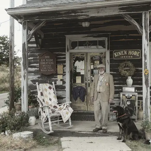 3 months ago A vintage roadside store, rocking chair with a quilt, an old man, ice machine and a dog 8ab53dd69c2 PRO 0 13