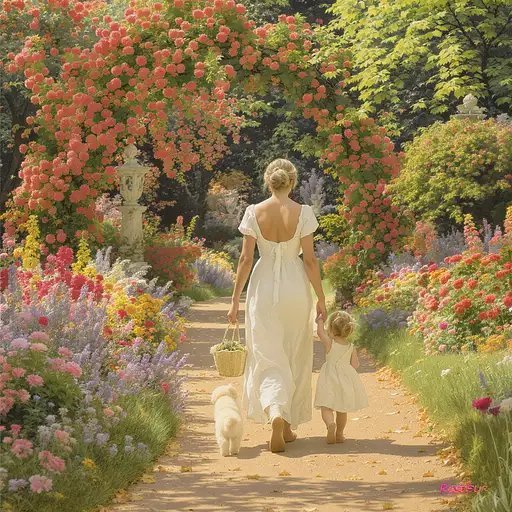 3 months ago IN A BEAUTIFUL GARDEN A BEAUTIFUL Medium-skinned LADY WALKS TOWARDS YOU WITH HER LITTLE GIRL AND PUPPY, IN OILS. Withe the text in small font "ROSEBUR' at the lower right corner. 8ab53dd69c2 PRO 0 10