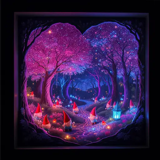 3 months ago A shadow box with gnomes playing in a neon lit forest, shadow box art 8ab53dd69c2 PRO 0 12