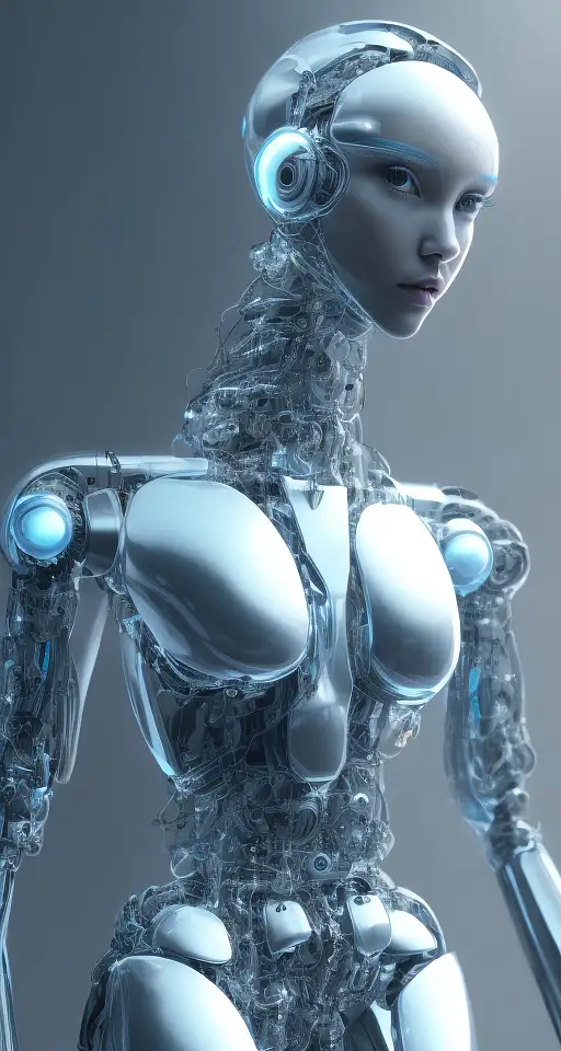 almost 2 years ago Transparent Elegant Anime Futuristic Android Humanoid Robot, Cyberpunk Artificial Intelligence Movie, Ex Machina Movie, Portrait, Robotics, Darkcore, Cyborgism, Surface Detail, talking to boy Nikon D750, long shot Professional photo of a robotic full body, hyper-realistic, natural beauty, no filter, depth of field, natural light, fashion catalog 95779baf787 4 470