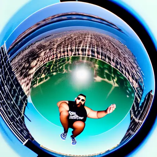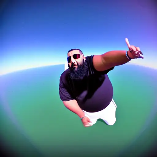 over 2 years ago DJ Khaled soaring through the air at high velocities through a fisheye lens, smooth render, 32K, ultra realistic, amazing quality, 3D 8de893327f0 0 33