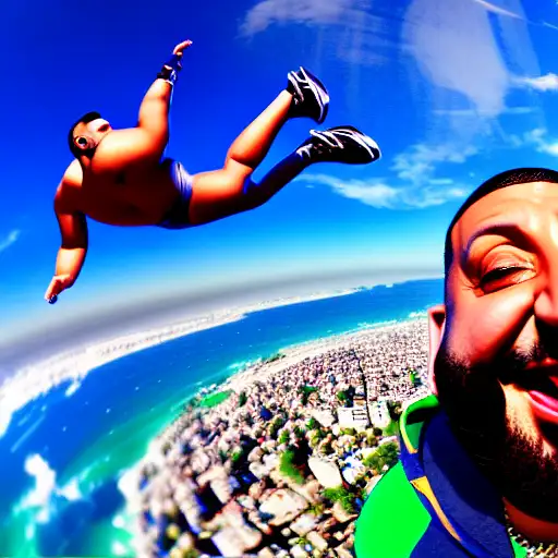 over 2 years ago DJ Khaled soaring through the air at high velocities through a fisheye lens, smooth render, 32K, ultra realistic, amazing quality, 3D 8de893327f0 0 40