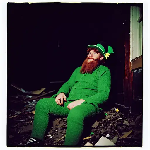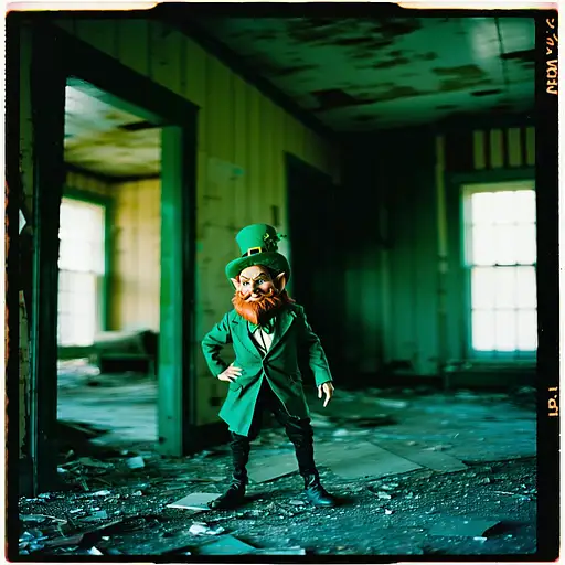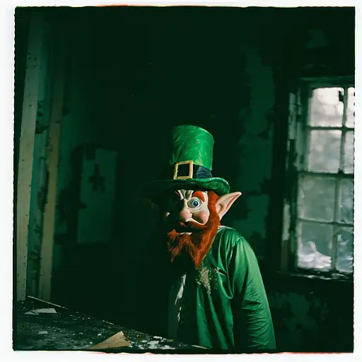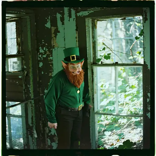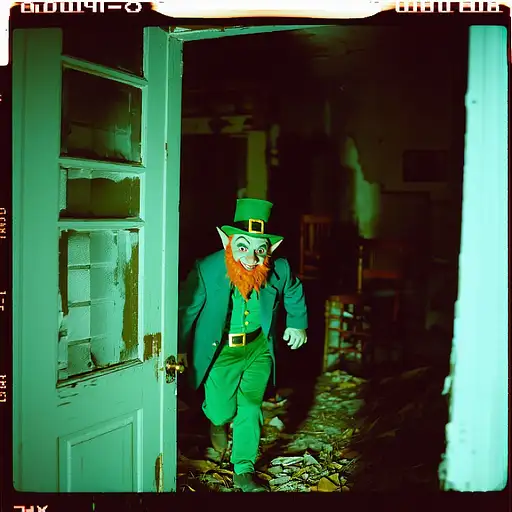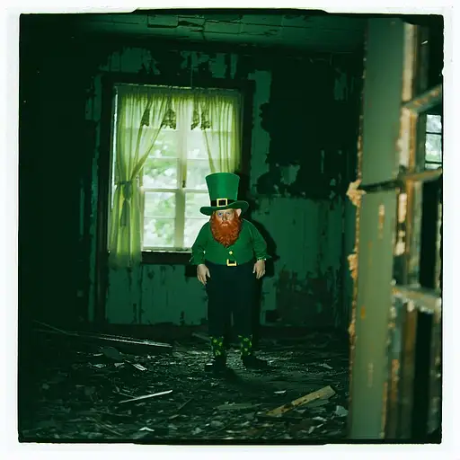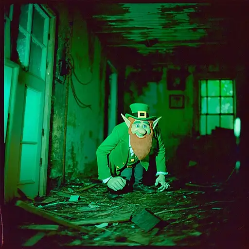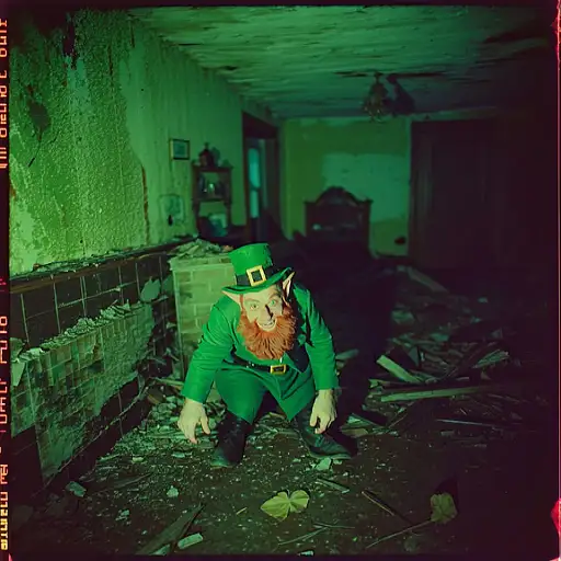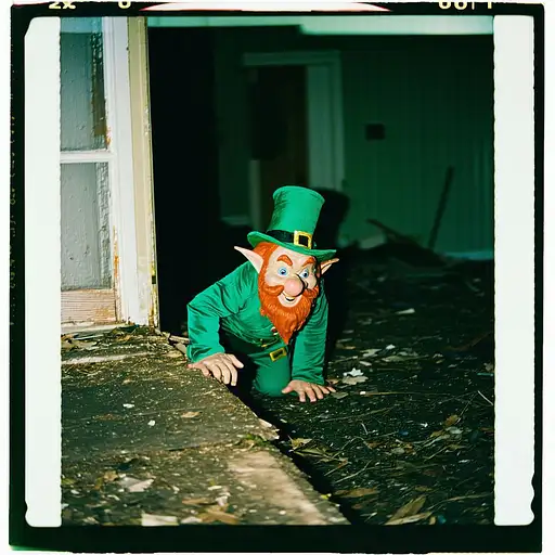 10 months ago grainy 80's photograph quality polaroid of a leprechaun caught in an abandoned house, dark, uncanny 8de893327f0 0 8