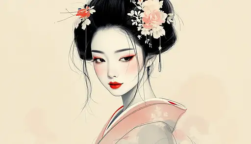 7 months ago A vibrant watercolor portrait of a Japanese geisha, depicted in dynamic motion, set amidst a serene and mysterious Japanese garden at dusk, illuminated by soft, warm lantern light. The style is a blend of Paul Klee, Modigliani, and minimalist line art, with sketchy color accents. The geisha's pale skin and dark hair are prominent. Delicate cherry blossoms, bonsai trees, or gentle stone lanterns subtly peek from behind the geisha, blending with the soft, gradient earth tones of the background, ranging from warm terracotta to cool moss and sage, now infused with Japanese blue gradients and earth-toned greys in both cool and warm tones. The lanterns cast a soft, warm glow, enhancing the dreamy, enchanting atmosphere of the scene. 91e1b4b2a90 PRO 1 33